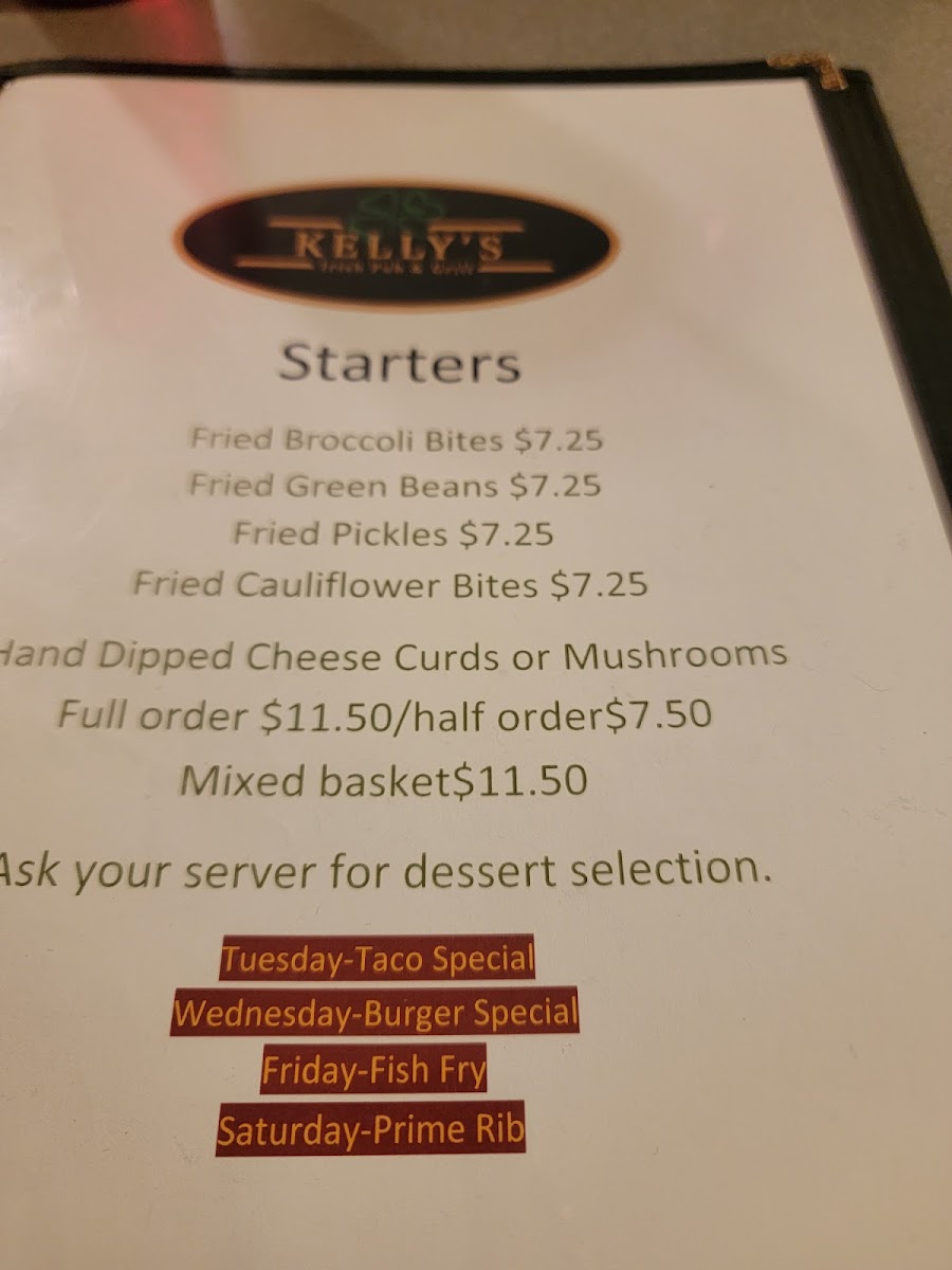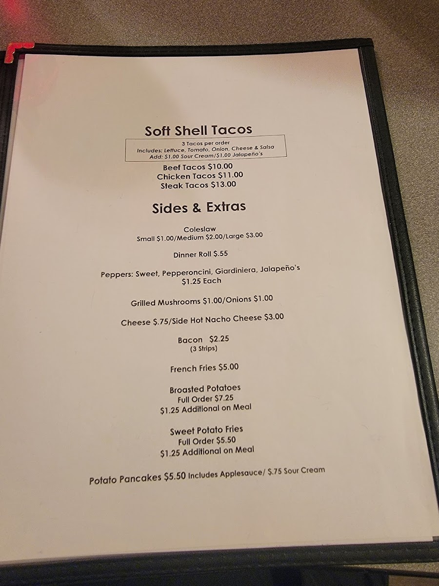 Items like potato pancakes, steak tacos, or a half-pound cheeseburger with bacon are often enjoyed during casual lunches or evenings where comfort and simplicity are key. Starters such as fried pickles and mixed baskets add playful variety to the experience, making it easy to snack while catching up or watching a game.