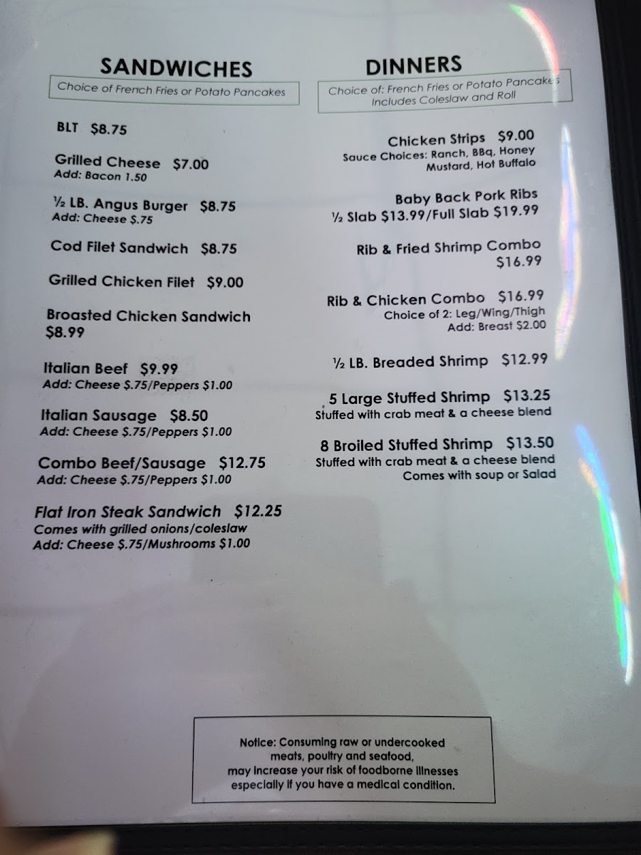 Whether you're stopping by for a weekend fish fry featuring options like beer-battered cod or lake perch, settling in for a satisfying fried chicken dinner, or enjoying lighter bites such as crispy wings and hand-dipped cheese curds, the menu complements the inviting neighborhood pub atmosphere. The selection encourages unwinding with friends over cold beers, a well-crafted Bloody Mary, or a glass of red wine.